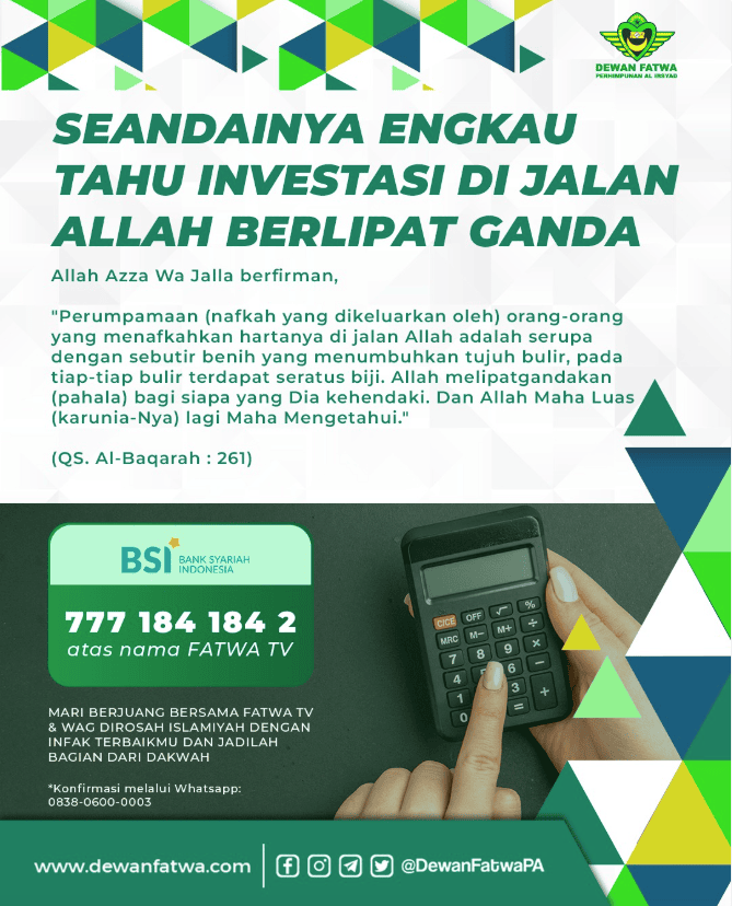 Seluruh dokumen fatwa yang tersedia di situs ini disediakan untuk keperluan edukasi, dakwah, dan penyebaran ilmu syar’i. Pengunjung diperkenankan untuk mengunduh dan membagikan file PDF tersebut secara gratis kepada keluarga, teman, atau komunitas, selama tidak melanggar ketentuan berikut:​